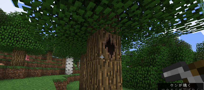 妖精の樹洞は原木ブロックを置き換える形で地形生成に伴って生成されます。