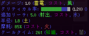 ライトニングロッドは新要素「クリティカル率」を持ちます。攻撃の際のダメージの決定時に、クリティカル率に示されたバーの比率に応じた確率でクリティカル倍率が決定されます。バーの右側に表示される数値は、確率ごとに重みづけされたクリティカル倍率の平均値です。