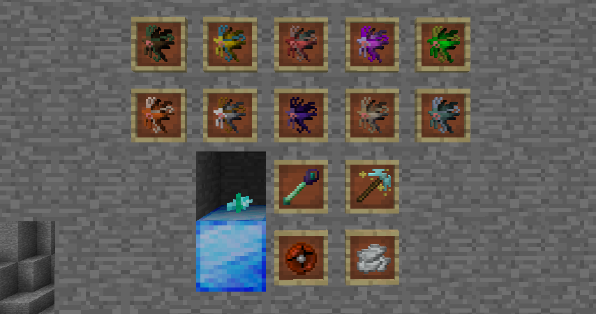 召喚のステッキを持って地面などのブロックを右クリックすると、インベントリ内の妖晶を消費して超高速で妖精を召喚することができます。排出率は妖晶を使用した場合との違いはありません。