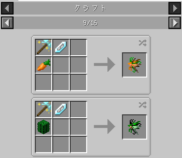 また、従来型のダイヤモンドを使用した確定レシピも、召喚のステッキを用いたものと同じバリエーションになりました。