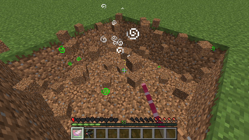 右クリックで発動する妖精魔法では広範囲のブロックをまとめて破壊できます。