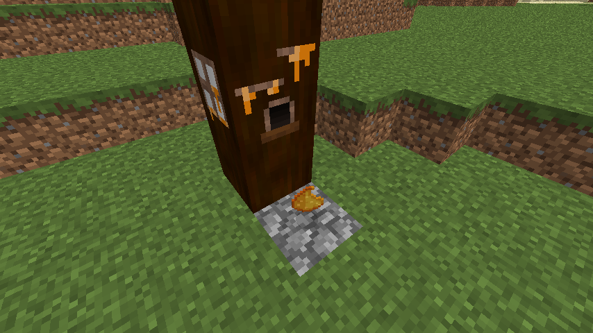 樹液取り職人スプルーツァの家は、妖精の原木およびバニラの葉ブロックと組み合わせて、日当たりのよい場所に「木」のような形になるように配置してください。