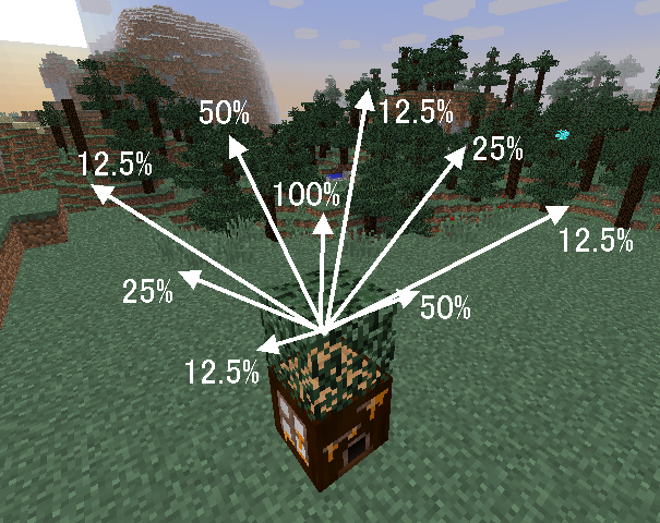 生産物はワールド上に直接生成されるため、ホッパー等で回収してください。