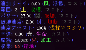 | 幸運 | 妖精魔法行使時に適用される幸運エンチャントのレベルです。 ※通常の採掘時には適用されません。 |