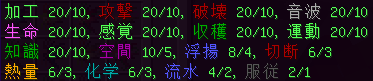 プレイヤーのエルグ耐性値は次のようになっており、化学や流水エルグを軽減します。