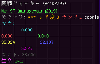 | コモン | 低い | コモン判定ブースト | ディメンションごとに固定出現の妖精 |