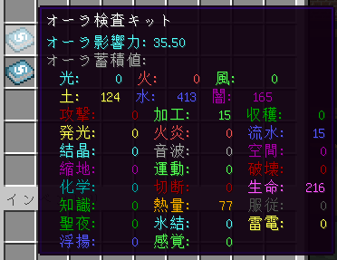 オーラ検査キットには使用効果はなく、ツールチップにオーラ蓄積値が表示されます。